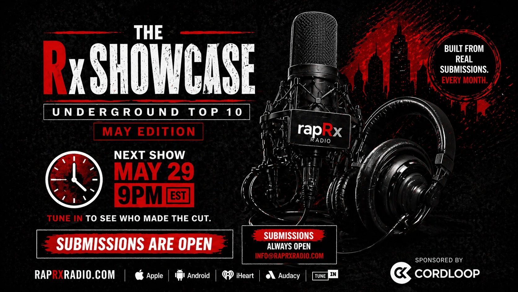 rapRx Radio accepts submissions from underground and independent artists whose music aligns with our curated sound.
